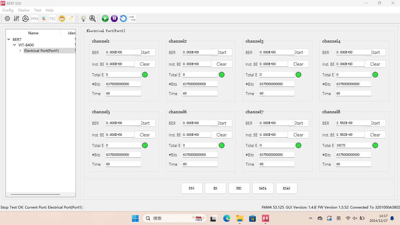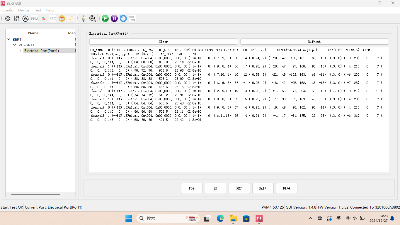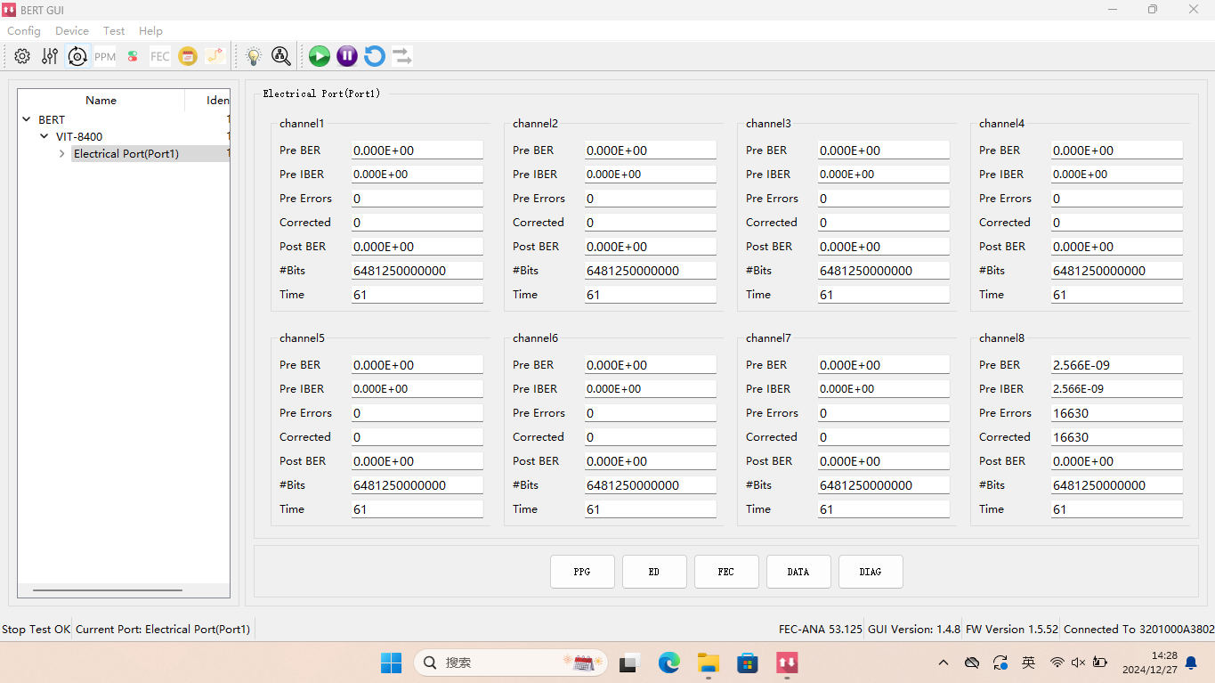 Pre and Post FEC Bit Error Rate測量