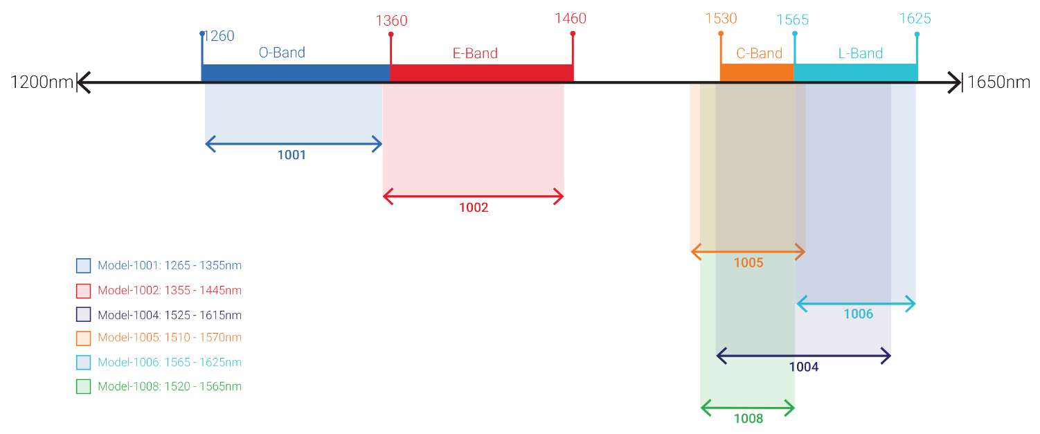 多種波長(zhǎng)范圍--選擇滿足您需求的型號(hào),并僅為您需要的功能付費(fèi)。OSA還可以根據(jù)客戶指定的波長(zhǎng)范圍進(jìn)行定制。