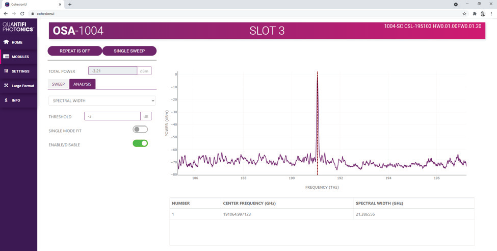 OSA 1000系列提供緊湊的MATRIQ?臺(tái)式型號(hào)或PXIe外形因子,支持SCPI控制和CohesionUI?——Quantifi Photonics現(xiàn)代的基于網(wǎng)絡(luò)的用戶界面。
