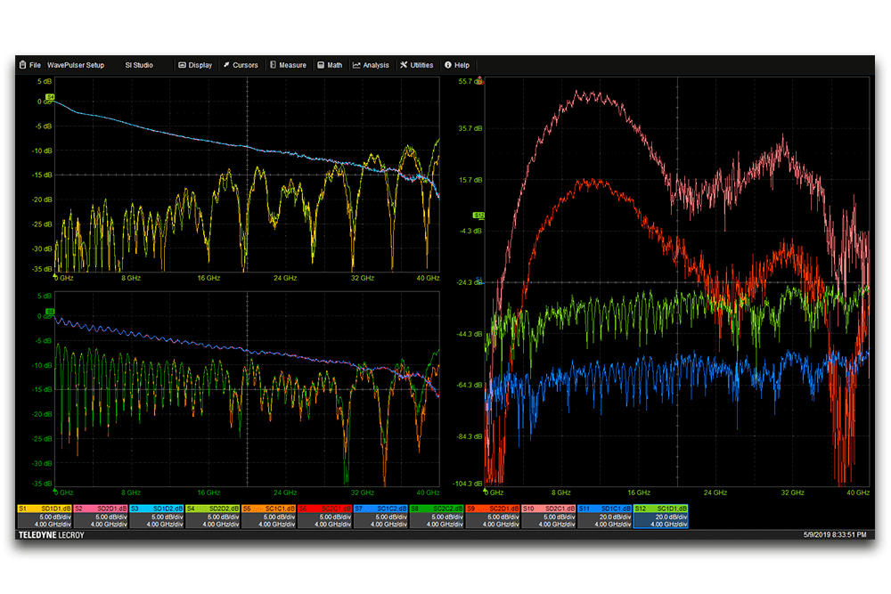 WavePulser 結(jié)果從 DC 開始,延伸至 40 GHz 帶寬,TDR 階躍響應(yīng)及經(jīng)時間門控/仿真的物理層信號響應(yīng)無需低頻或 DC 外推——對互連系統(tǒng)測試尤為理想,為高速互連測試提供完整帶寬與極致易用性。