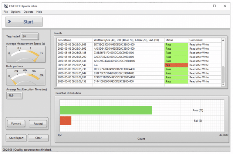 CISC NFC Xplorer Inline是生產(chǎn)過程中對(duì) NFC Inlay和標(biāo)簽進(jìn)行高速品質(zhì)保證測(cè)試的設(shè)備。它在生產(chǎn)過程中從頭到尾為產(chǎn)品提供質(zhì)量保證,包括性能測(cè)試和編碼。NFC Xplorer Inline可使用自帶GUI,也可通過串行接口、觸發(fā)口和 API 完全集成到裝配設(shè)備中。